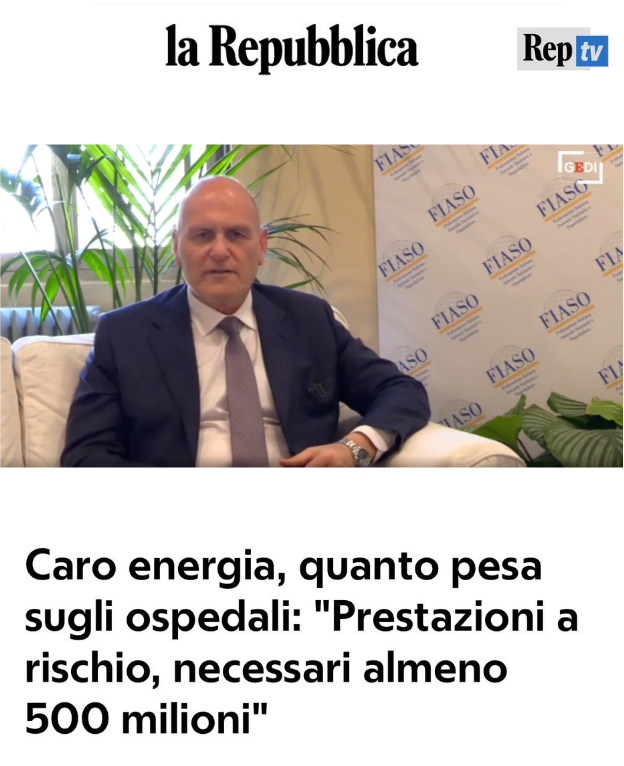 Su la Repubblica, Camilla Romana Bruno approfondisce con Giovanni Migliore il tema del caro energia, che rischia di gravare non tanto sui bilanci delle aziende sanitarie, quanto sul numero e sulla qualità delle prestazioni mediche offerte ai cittadini.