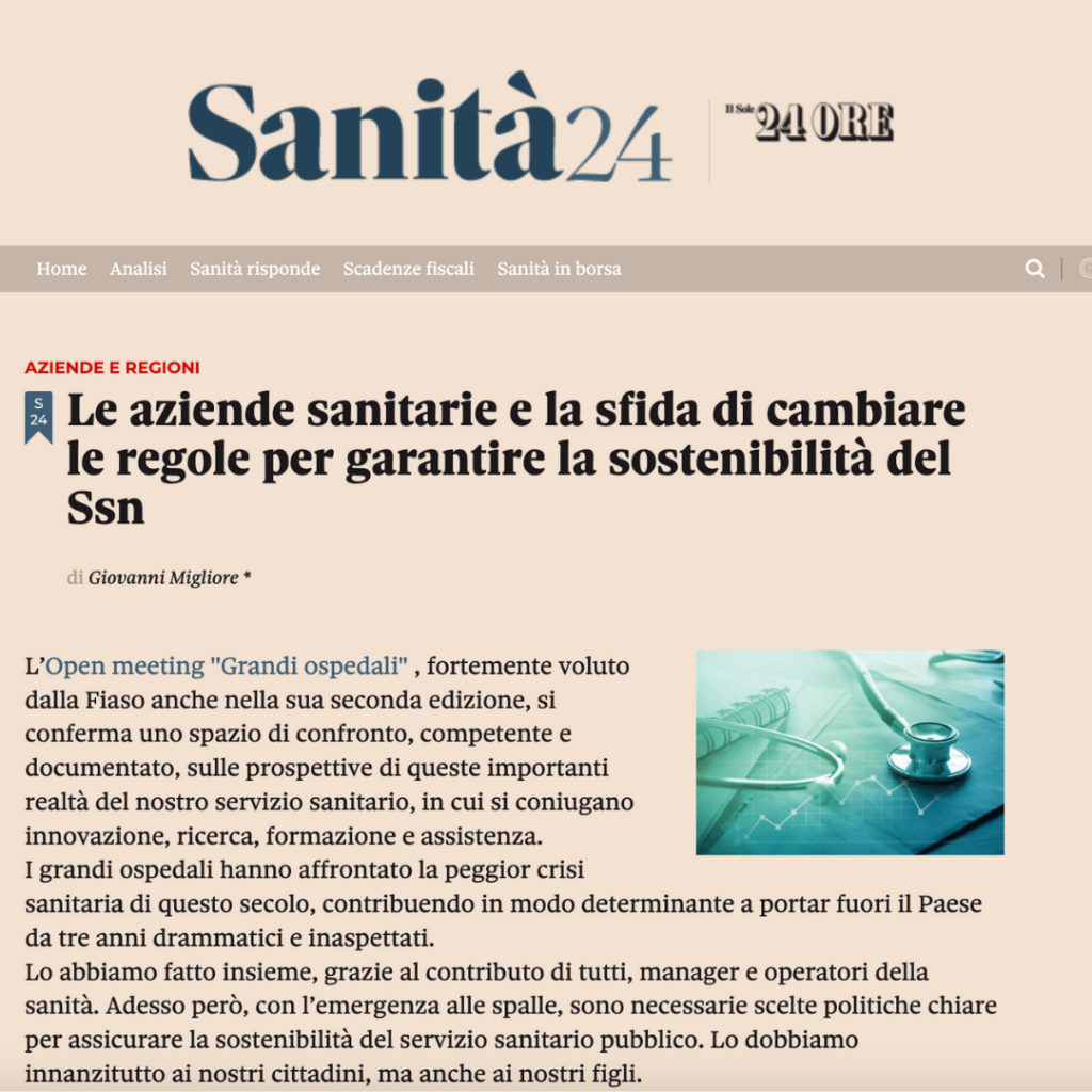 Leggi l’editoriale integrale del Presidente di Fiaso su Sanità 24 – Il Sole 24 Ore
