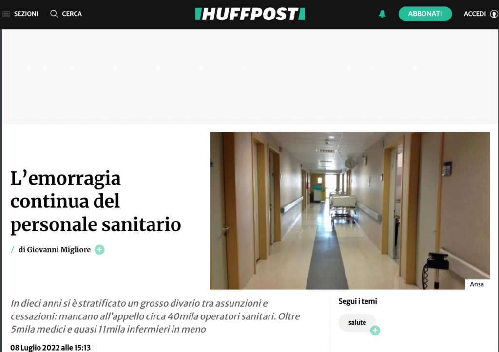 In dieci anni si è stratificato un grosso divario tra assunzioni e cessazioni: mancano all’appello circa 40mila operatori sanitari. Oltre 5mila medici e quasi 11mila infermieri in meno