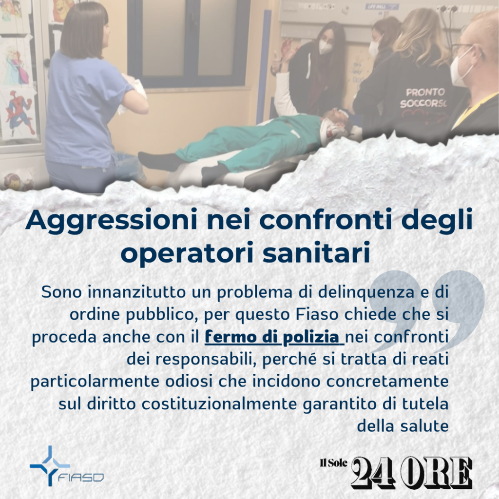 Ricordo che, anche grazie all’azione di Fiaso, in passato è stata approvata la norma che introduce un’aggravante specifica per la violenza commessa nei luoghi di cura a danno del personale sanitario, che consente la possibilità di procedere d’ufficio, ma non basta. È necessario che le forze dell’ordine e la magistratura affrontino con determinazione qualunque episodio, in modo da esercitare la necessaria deterrenza”.