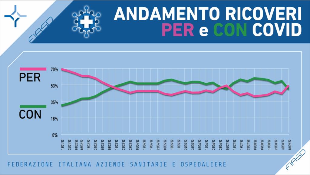 Questa rilevazione mostra un calo dei ricoveri PER COVID senza alcun caso in intensiva e una stabilità dei CON COVID con un caso in terapia intensiva.