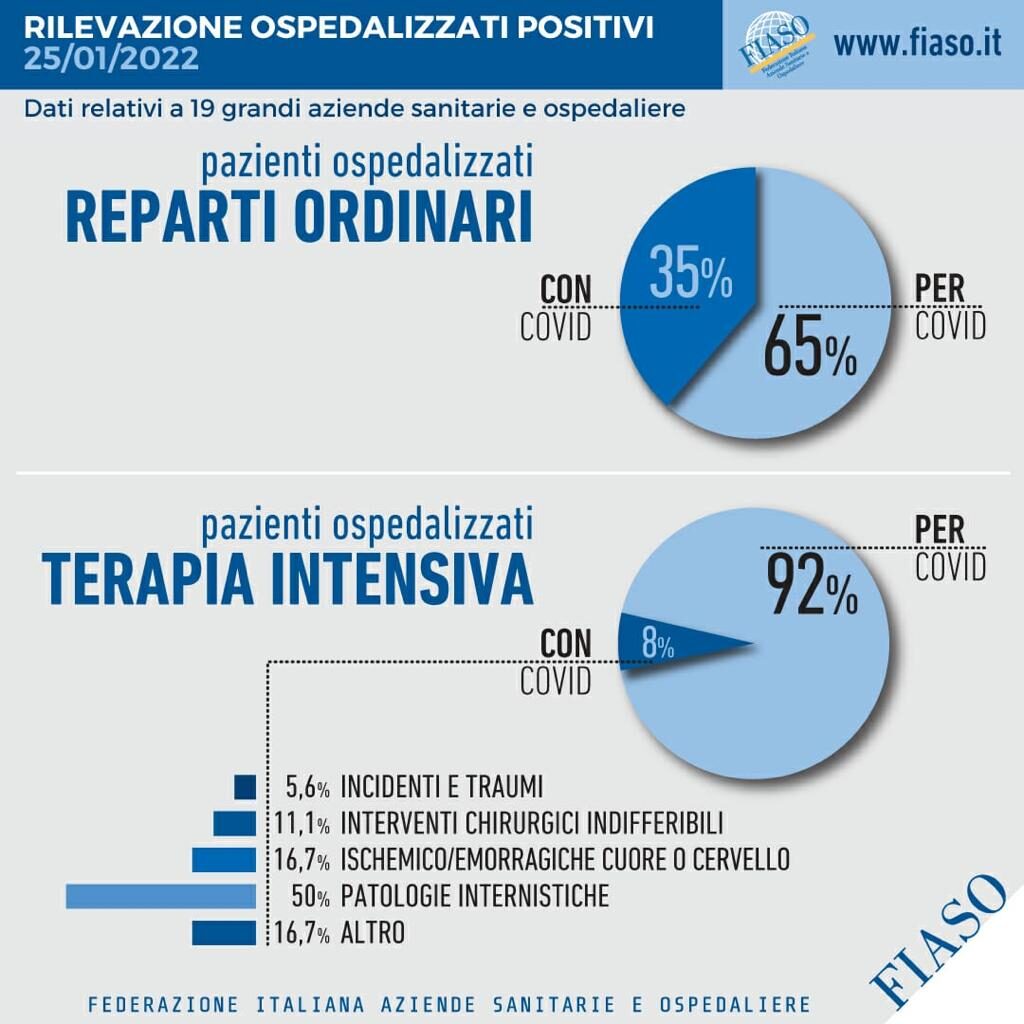I dati sono stati raccolti alle ore 8,00 del 25/1/2022 e sono relativi ai pazienti presenti sia nei reparti ordinari che nelle terapie intensive.