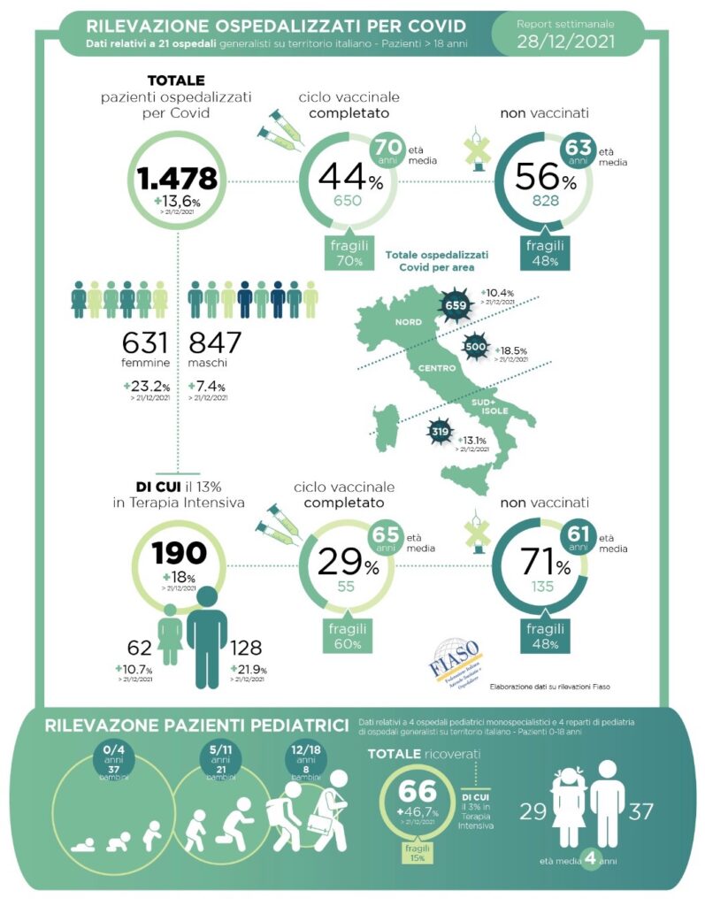 I dati sono stati raccolti alle ore 8,00 del 28/12/2021 e sono relativi ai pazienti presenti sia nei reparti ordinari che nelle terapie intensive.