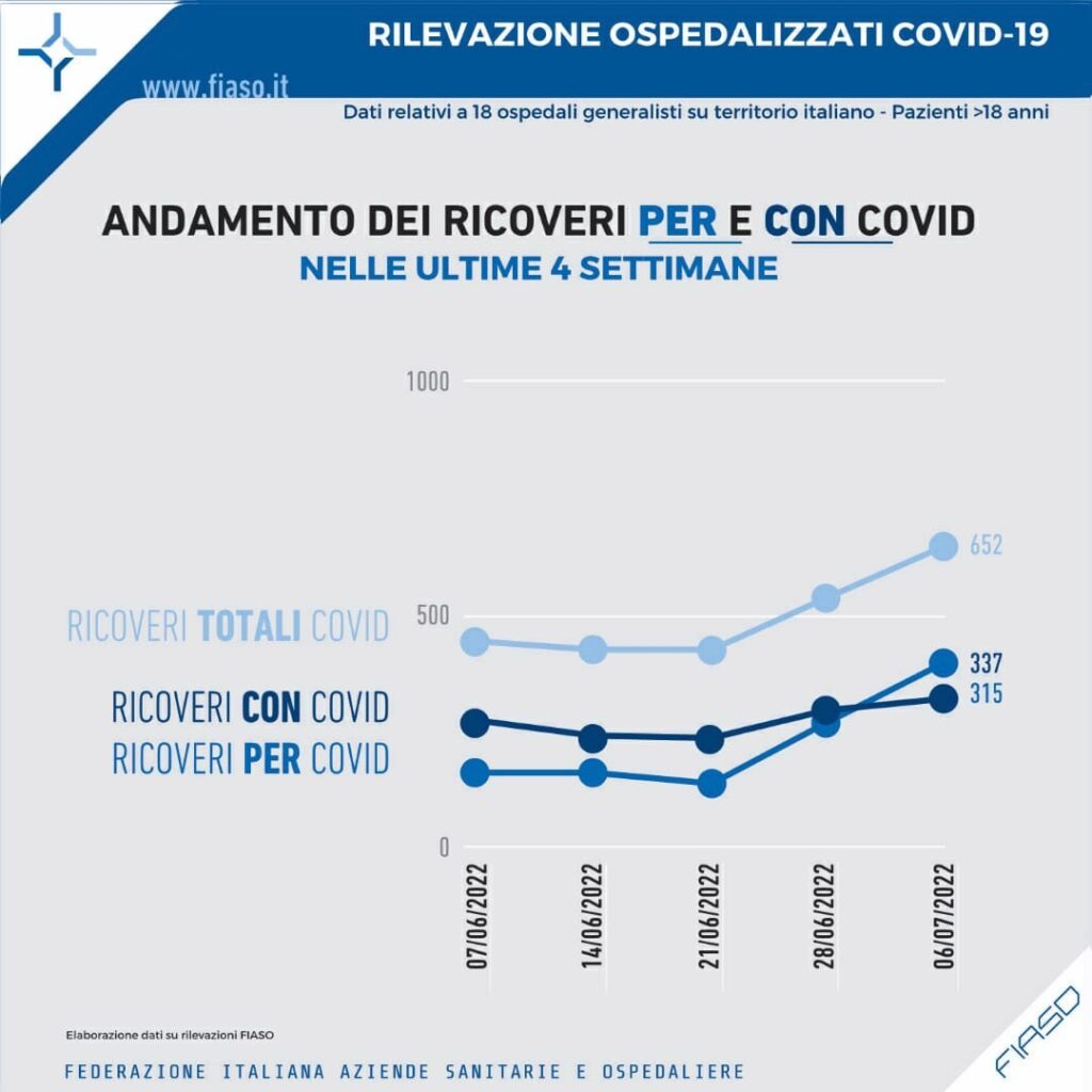 I ricoveri PER COVID salgono del 20,1% e i CON COVID salgono del 9,7%.