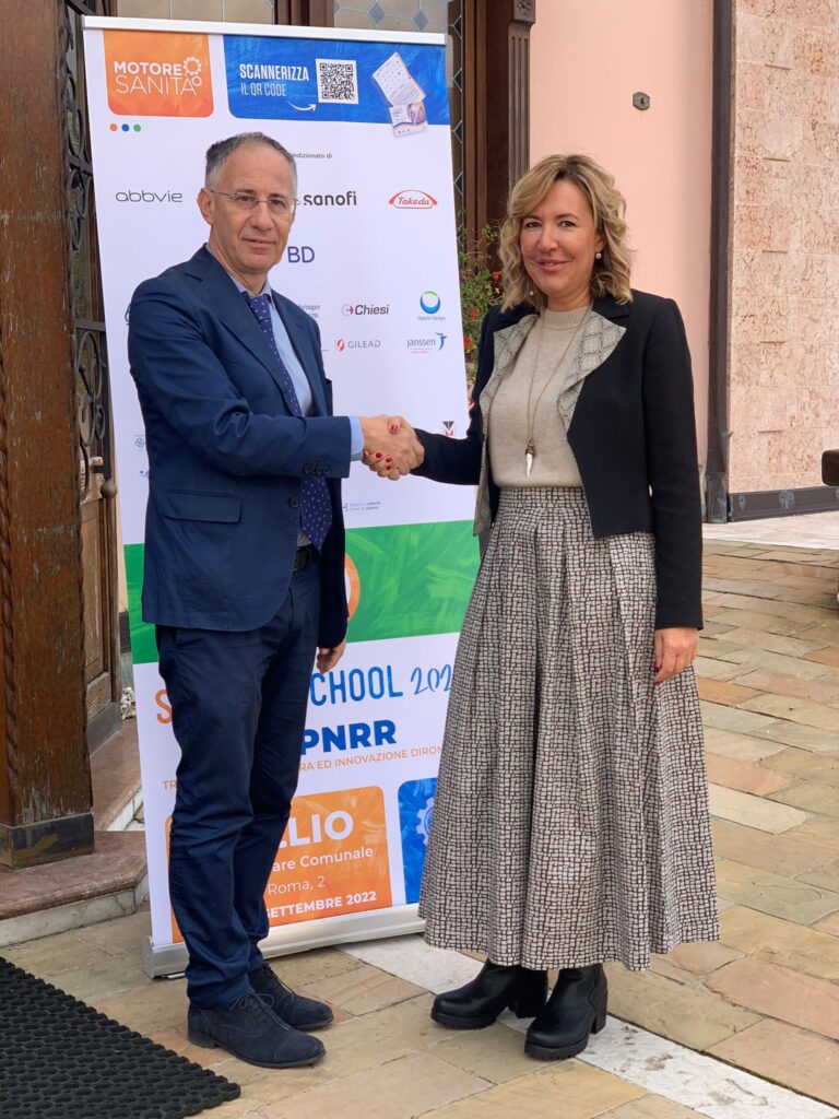 Durante la seconda giornata della Summer School 2022, in corso di svolgimento ad Asiago, ha avuto luogo la firma di accordo tra Motore Sanità e la Federazione Italiana Aziende Sanitarie e Ospedaliere (FIASO) siglato dalla Presidente di Motore Sanità Giulia Gioda e dal Vicepresidente vicario di FIASO Paolo Petralia, al cospetto di responsabili, Direttori generali e top account di aziende.
