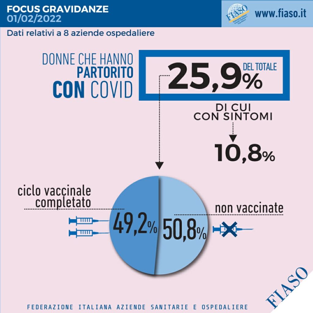 L’analisi di Fiaso su 8 ospedali sentinella evidenzia come il 26% dei parti sia avvenuto in area Covid e come il 45% delle gravide non sia vaccinato